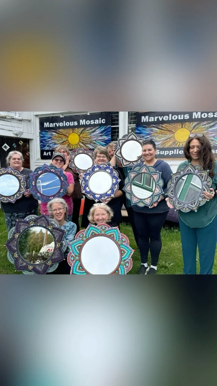 I prefer to use half-inch Birch plywood for my bases, since they are thinner, lighter, and more durable than similar bases made of MDF. They are very stable and hold up exceptionally well to glue and grout. The mirror glass is inset from behind for a professional finish.